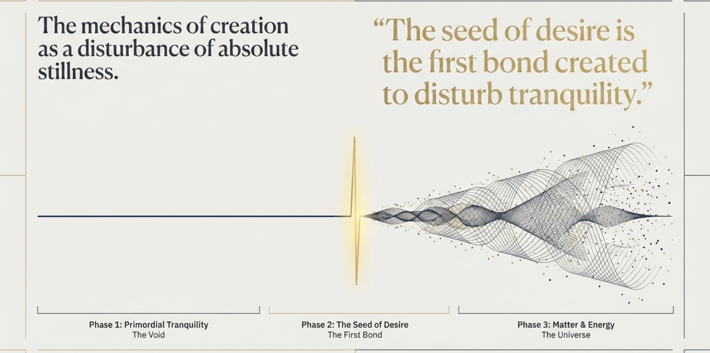 If “Desire” or intent was the first bond to disturb the tranquility of the void, is it time to include a “state of intelligence” as a fundamental factor in our theories of physics? Are scientists listening? As we refine our maps of the physical world, we may find that the missing variable in our equations was identified ten millennia ago. Perhaps intelligence is not a late byproduct of matter, but its very catalyst—the primordial disturbance that started it all.