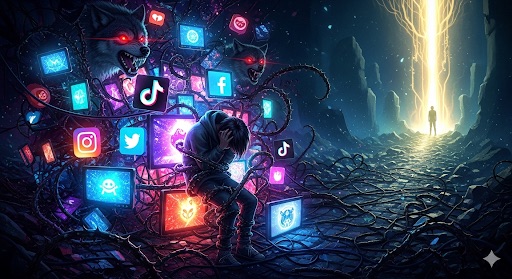 Once upon a time in the bustling digital haze of 2025, there lived a Gen Z kid named Mahi. At 22, Mahi was the epitome of the scroll generation—his thumbs were practically fused to his phone screen. From dawn till the wee hours, he’d dive into endless feeds: TikToks of outrageous fails, Twitter rants about the world’s injustices, Instagram reels flaunting unattainable lifestyles, and Reddit threads dissecting every conspiracy under the sun. “Just one more video,” he’d mutter, as hours evaporated like morning dew. His mind was a whirlwind of envy, outrage, and FOMO, constantly chasing the next dopamine hit. Opportunities? Nah, all he saw were reasons to be mad—the economy sucking, friends ghosting, climate doom scrolling right into his psyche.