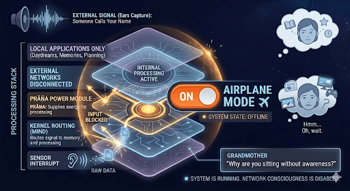 In ancient Indian philosophy, Vanaprastha is the stage of life where one withdraws from worldly noise to seek reflection. Airplane Mode is perhaps our accidental, digital version of this. It is a “Micro-Vanaprastha”—a retreat that requires no forest, only a thumb and a screen.