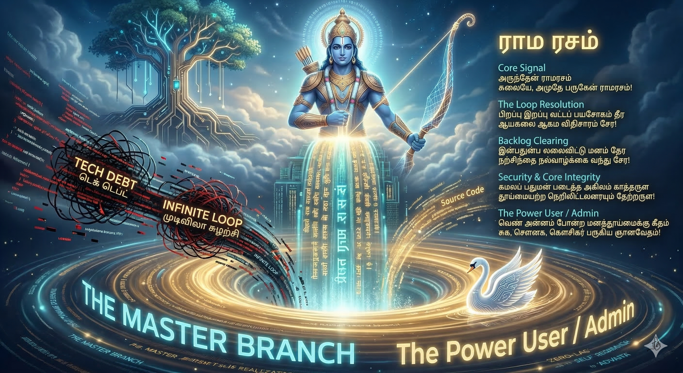 To “drink” this Rama Rasam is to undergo a spiritual alchemy—where the lead of human anxiety is transmuted into the gold of Brahmanishtha (absorption in the Truth). It is the final “Refactor” of the soul, returning it to its pristine, uncorrupted Source.