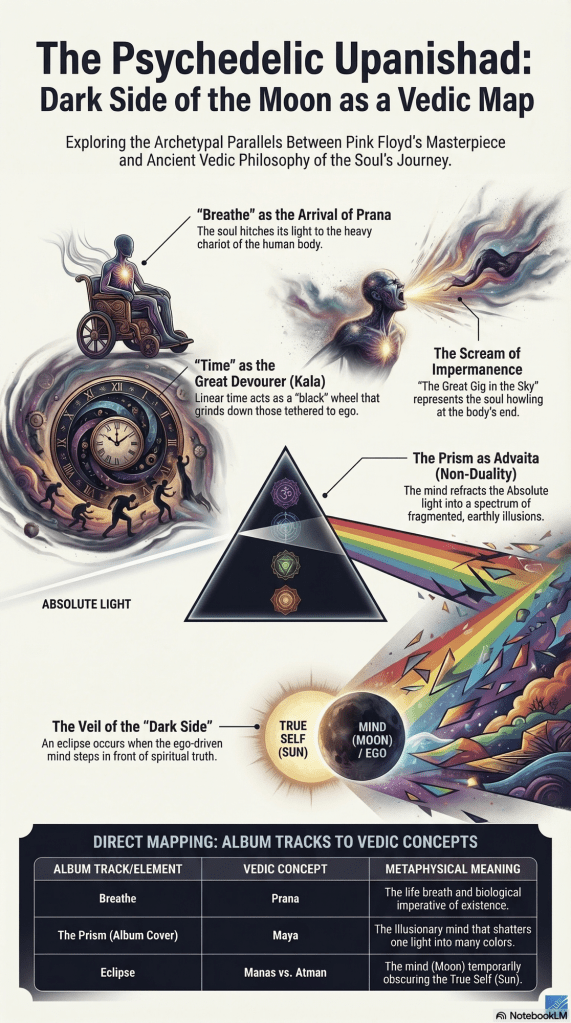 “The Floydian Upanishad” ends as sonic theology. The Sage gives the Sūtra, the slender thread of insight. Floyd provides the Bhāṣya, an exegesis in echoes and pulse. Where the rishi speaks, the music breathes. Where the mantra points, the sound walks.